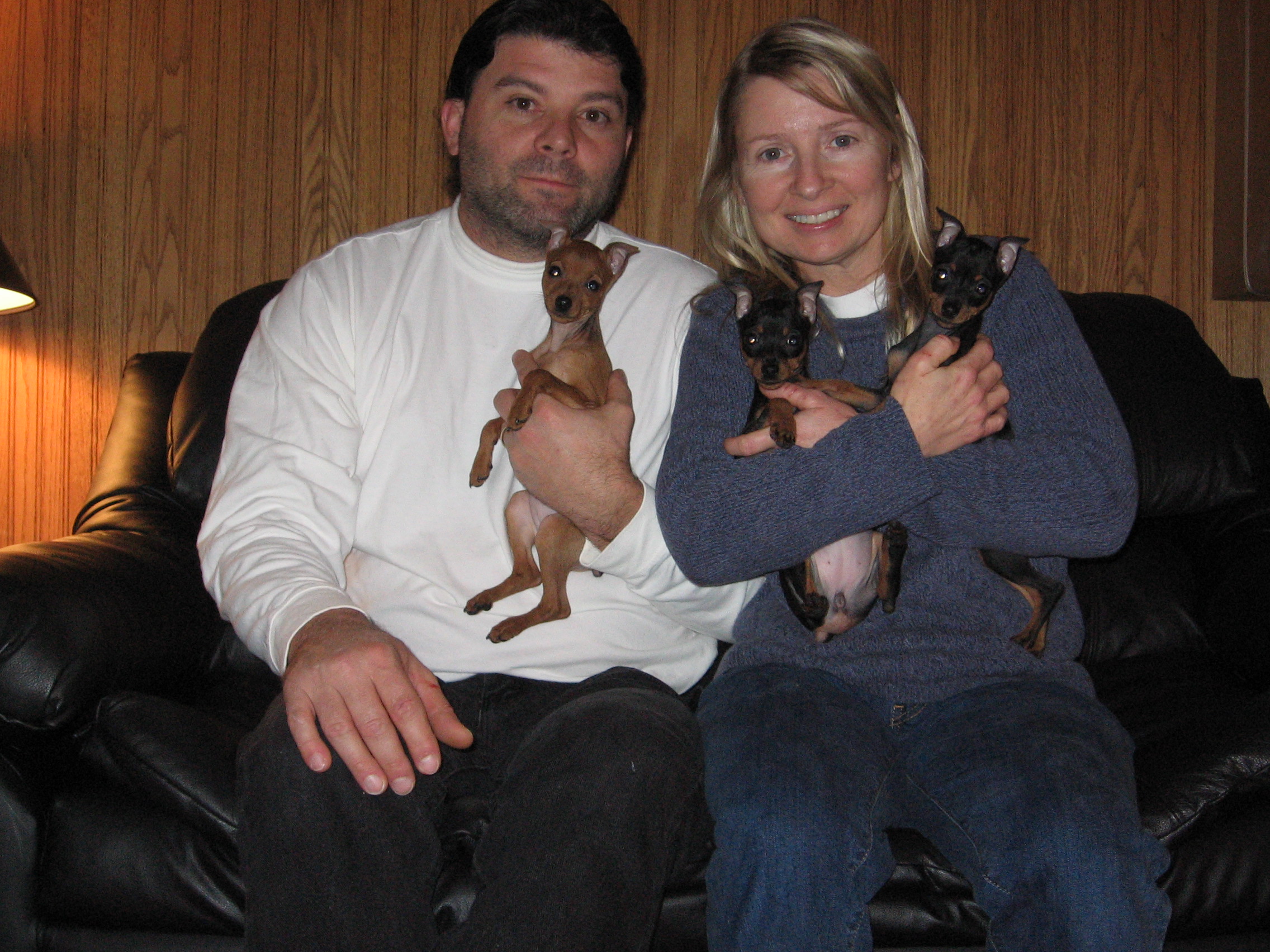 I began to wonder if this mouthy issue was normal. What do inquiring minds do when they are searching for answers? Why, they turn to the Internet, of course. The pups had been in our possession for about a week and a half when I received an unexpected gift, school was cancelled due to a snow day. I was ready to do some research and hopefully find answers to our pressing issue. I spent several hours on my computer hoping to find advice for the mouthy behavior. I explained our situation so many times that afternoon that I lost count. My scenario described how Bob and I had just acquired three female Min Pin littermates and were seeking advice on how to best handle mouthy puppies. I emailed breeders and trainers, and posted on various dog forums, oblivious to the fact that my picture perfect vision of our little family was about to be shredded into a million pieces.
